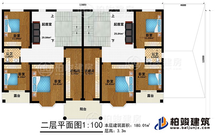 二層:6臥室、2露台、陽台、2衣帽間、2公衛、2起居室